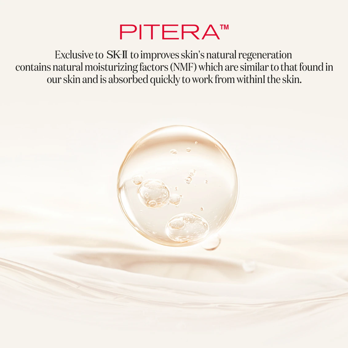 PITERATM : SK-II’s exclusive and naturally derived ingredient crafted from a proprietary fermentation process of a unique yeast strain.